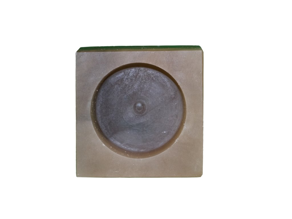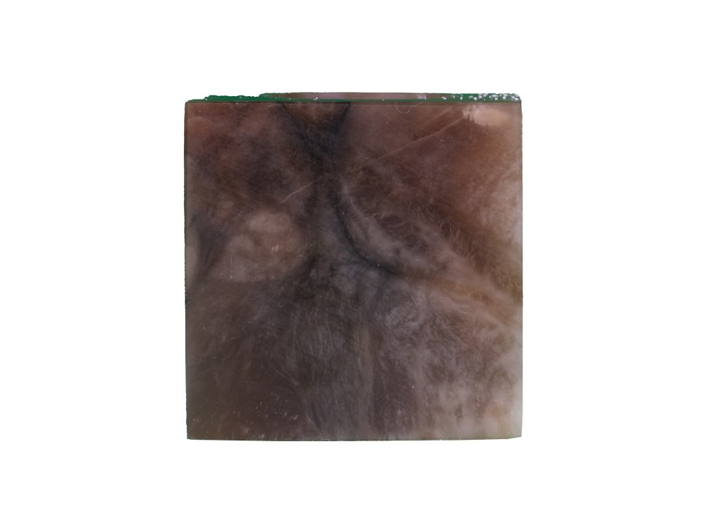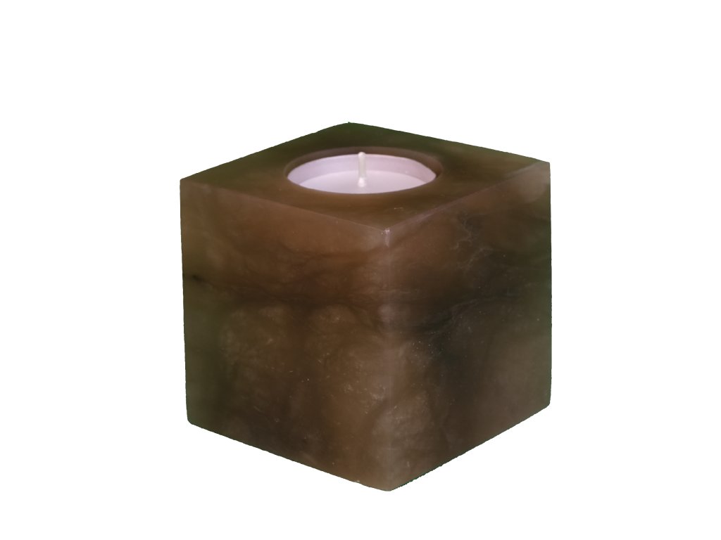 Hranatý svícen vyrobený z hnědého alabastru, určený pro čajové svíčky.
